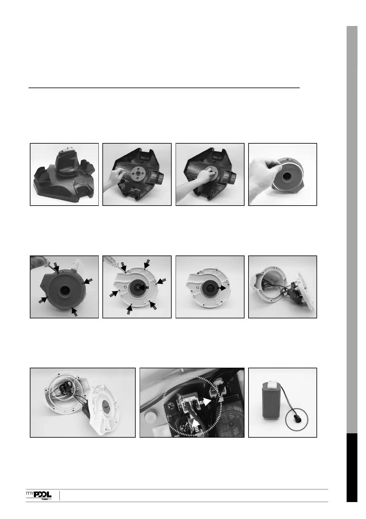 bottom plate first. Then unscrew all the screws at the base as shown. Remove the impeller and