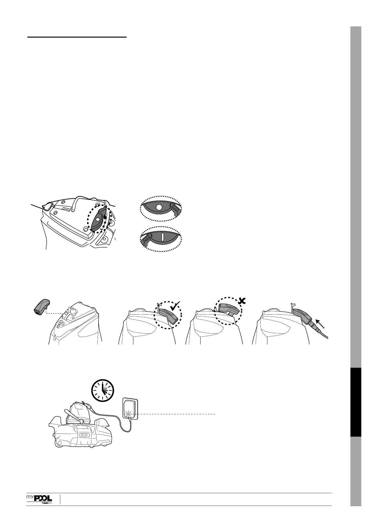 ATTENTION! Veillez à ne pas inverser la prise de charge et assurez-vous que la prise de charge et