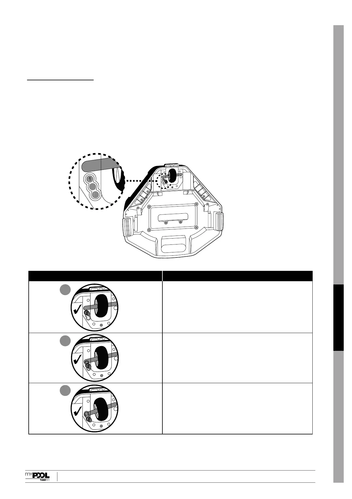 La trayectoria del limpiafondos depende de la posición del pasador que mantiene el eje en cierto ángulo. Hay dos pasadores: