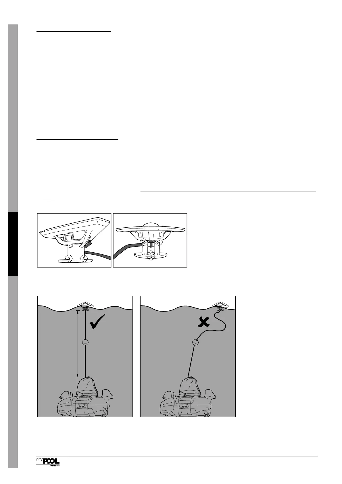 La lunghezza corretta della fune deve essere equivalente alla distanza tra la parte superiore del robot e il livello dell’acqua.