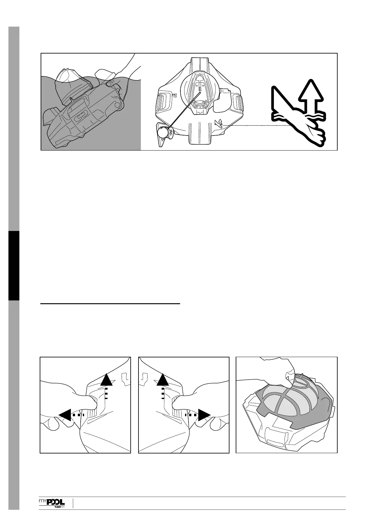 simbolo della mano (vedere lo schema seguente) per facilitare il recupero dalla piscina .Assicurati di afferrare sempre il robot