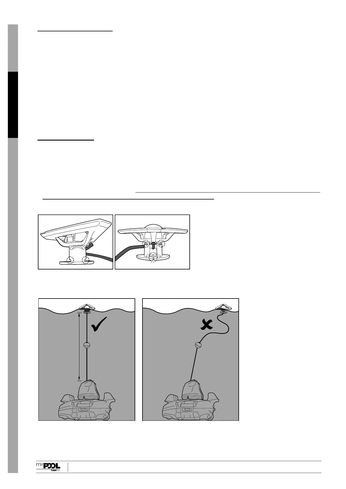 Die korrekte Länge des Seils sollte dem Abstand zwischen der Oberkante des Roboters und dem Wasserspiegel entsprechen.