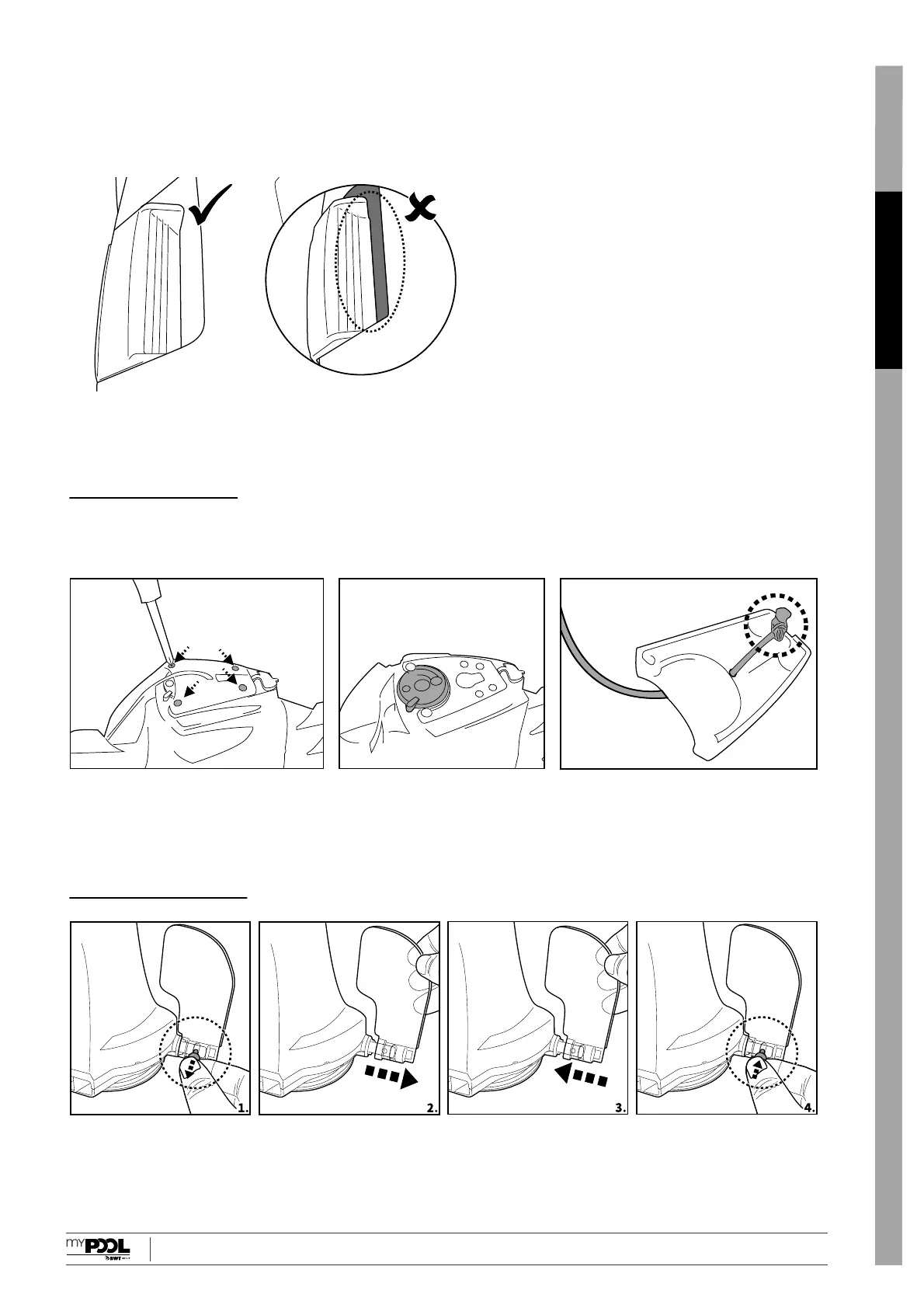 3. Stellen Sie nach der Reinigung sicher, dass die Filterabdeckung eingesetzt sowie die obere Gehäuseabdeckung korrekt
