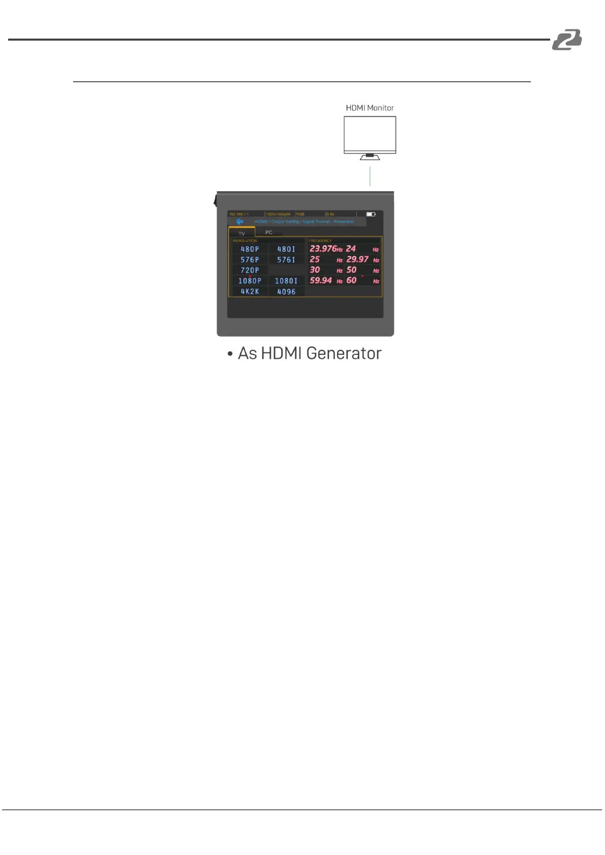 1. The “Signal Format” menu provides different signal resolutions, frequency,