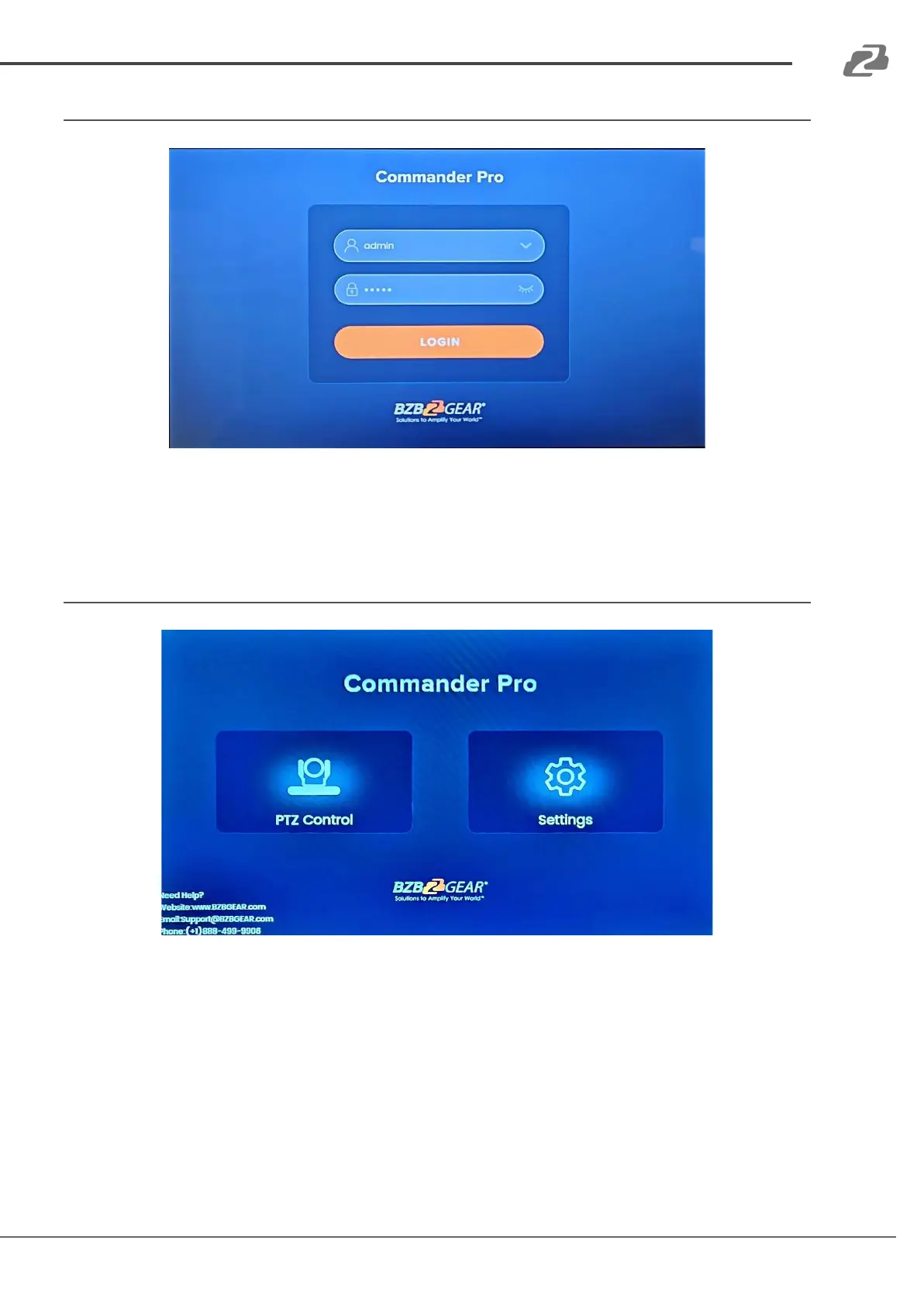 ○ PTZ Control: Access the BG-Commander-Pro’s PTZ interface to control connected