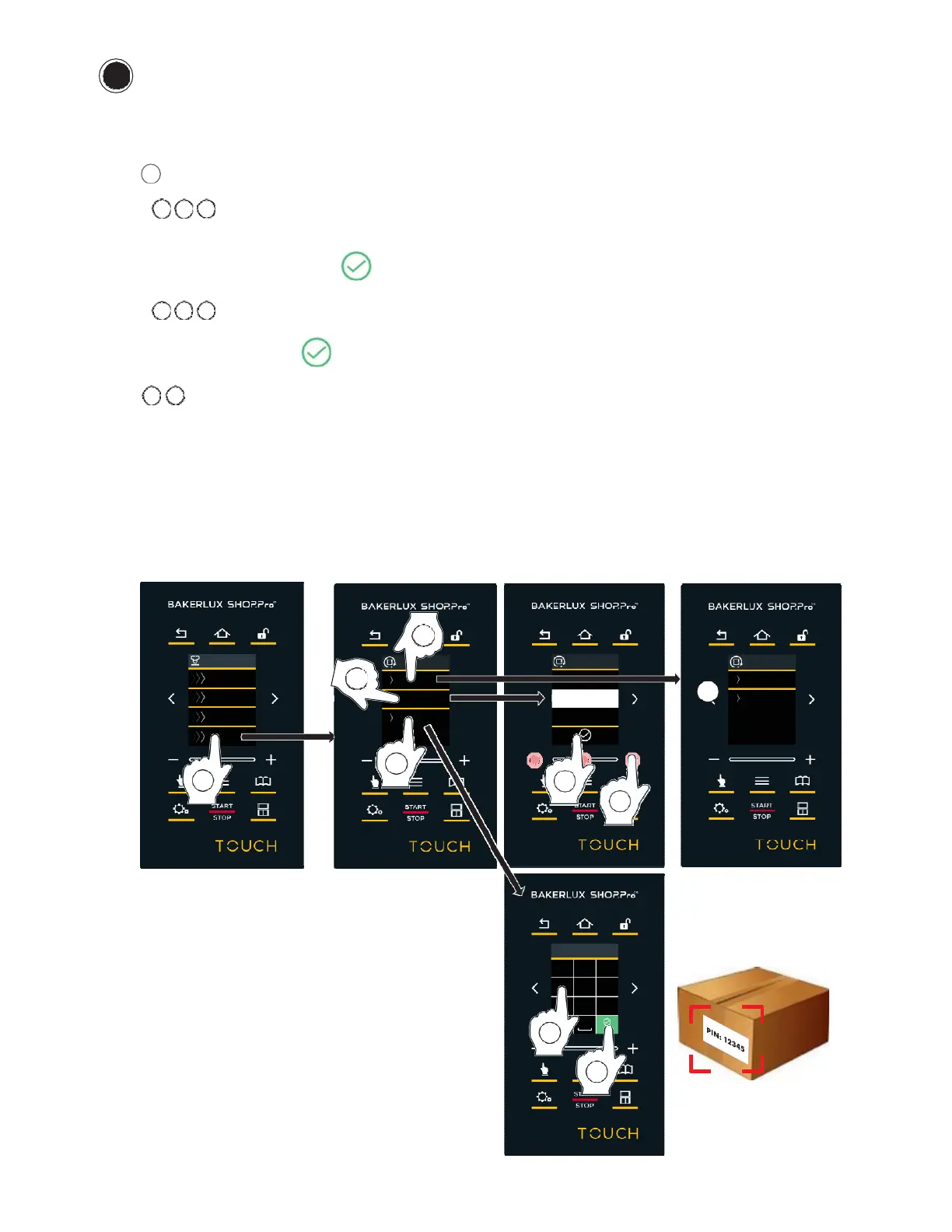 using the kit provided with the oven and is inserted/modified by pressing the “+” and “-” buttons until you reach the