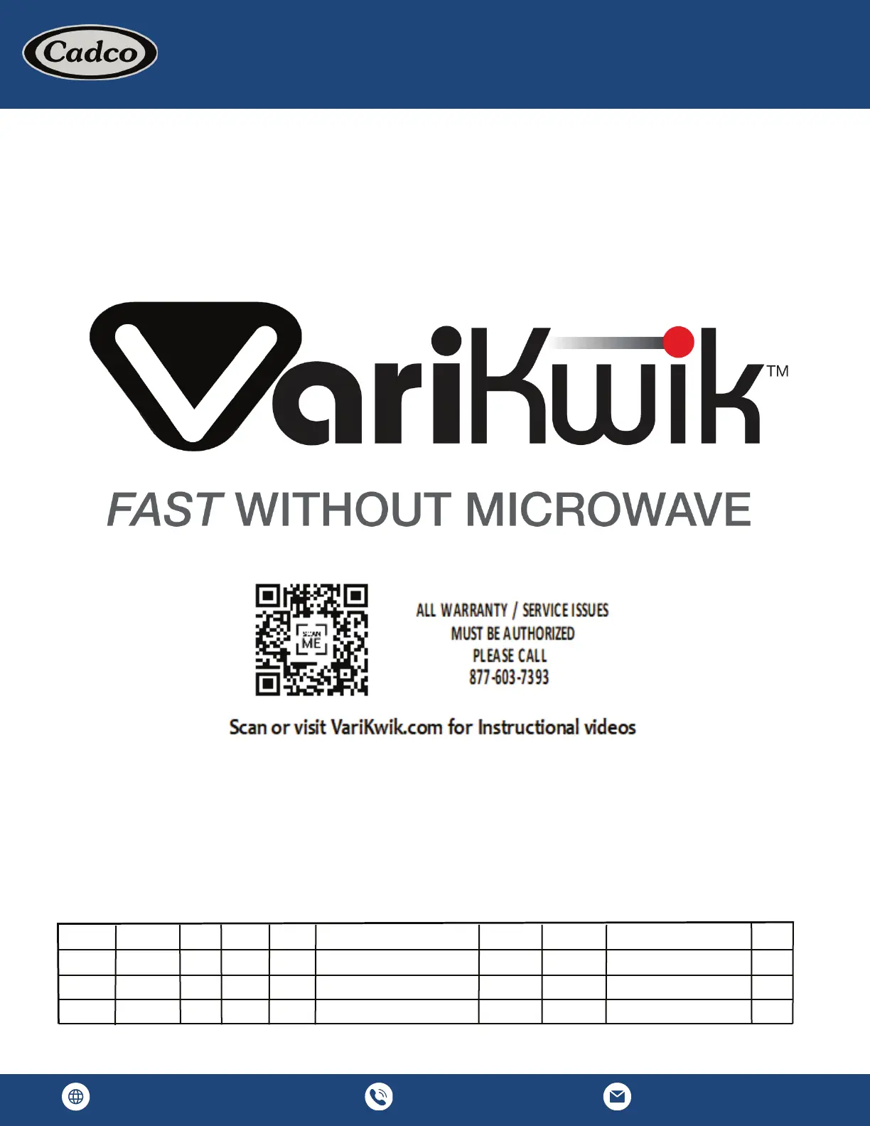 Bekijk gratis de handleiding van Cadco VariKwik CCP-VKII, stel vragen en lees de antwoorden op veelvoorkomende problemen, of gebruik onze assistent om sneller informatie in de handleiding te vinden of uitleg te krijgen over specifieke functies.
