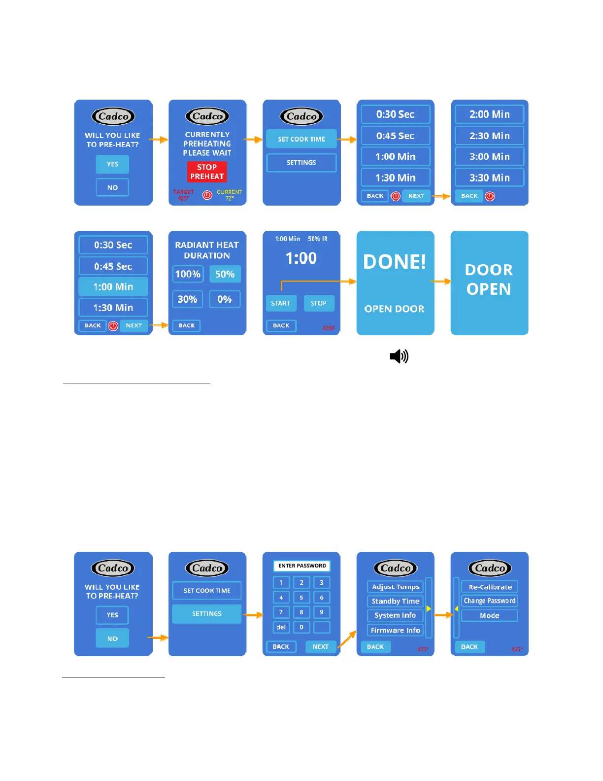 When you press desired cook time, the RADIANT HEAT DURATION screen will appear. (This is the