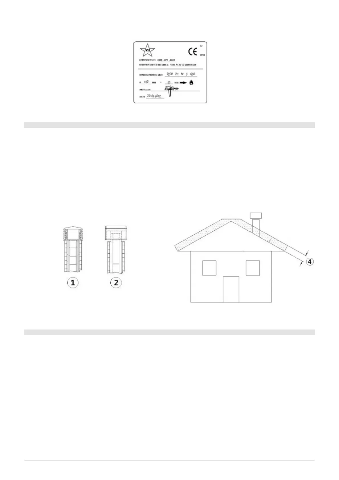 • The chimney flue must be provided CE in accordance with EN 1443 regulation. Please find attached an example of label: