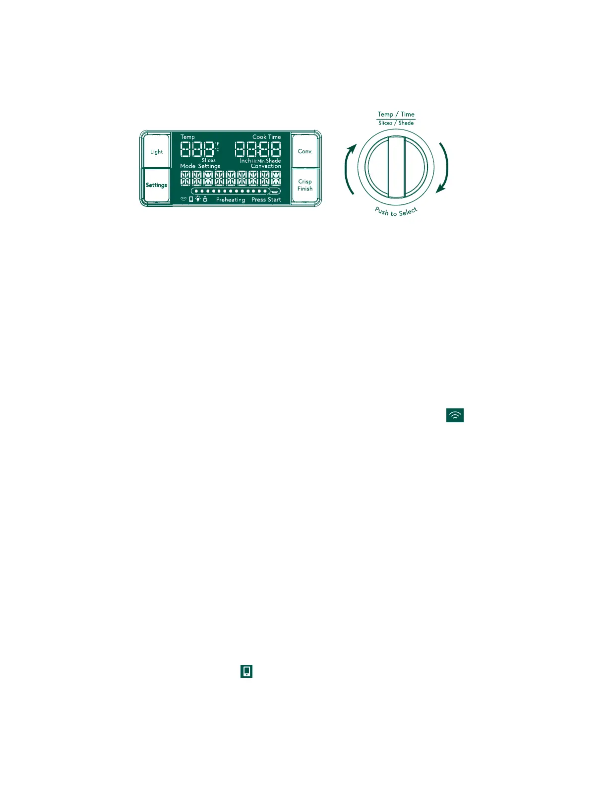 • Rotate the Temp/Time knob to toggle the WiFi status.