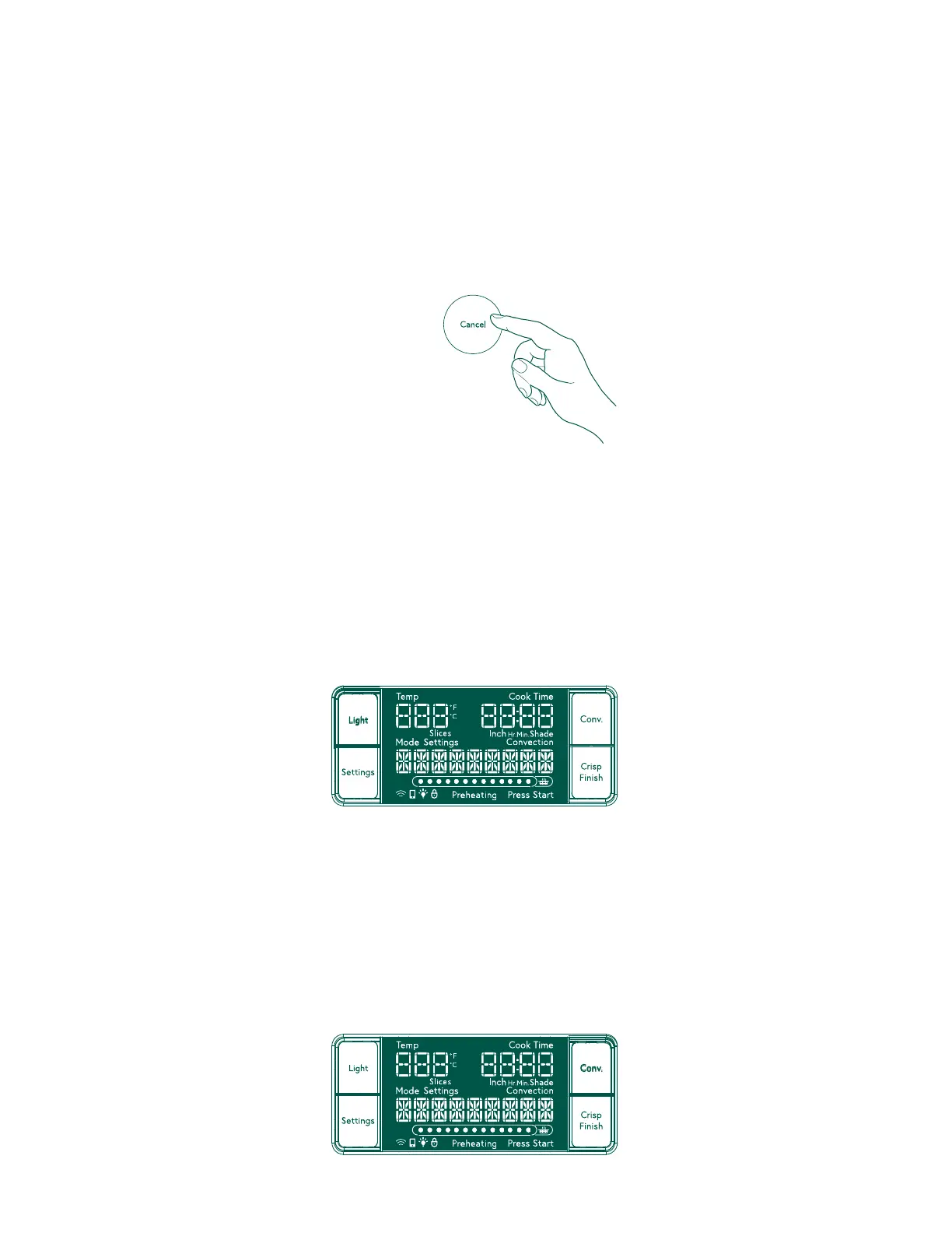 On peut aussi mettre fin au cycle de cuisson manuellement à tout moment en pressant le bouton Cancel.