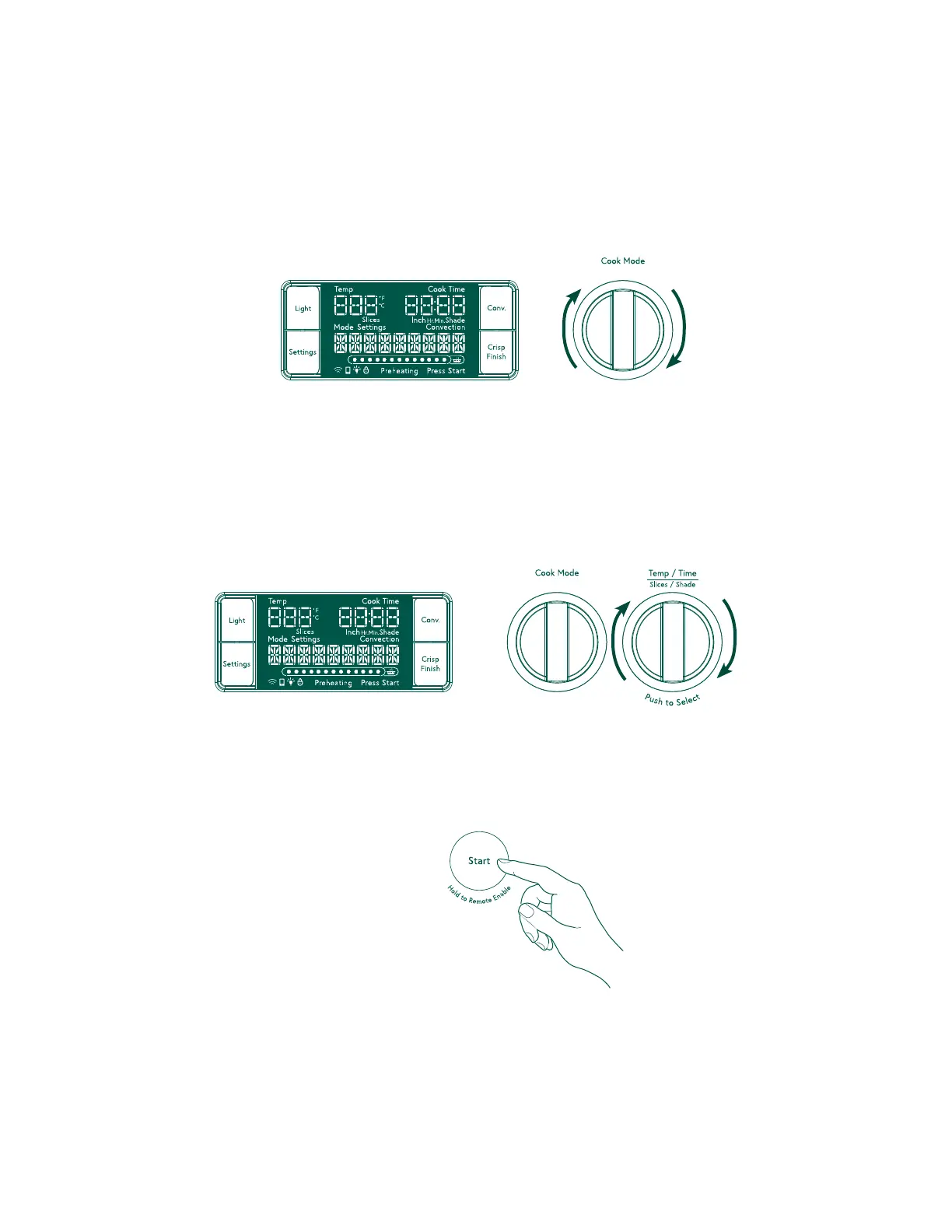 To select the cooking mode, rotate the Cook Mode knob until the desired cooking mode is shown on the control display.