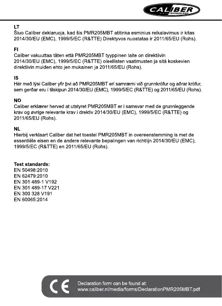Bekijk gratis de handleiding van Caliber PMR 205MBT, stel vragen en lees de antwoorden op veelvoorkomende problemen, of gebruik onze assistent om sneller informatie in de handleiding te vinden of uitleg te krijgen over specifieke functies.