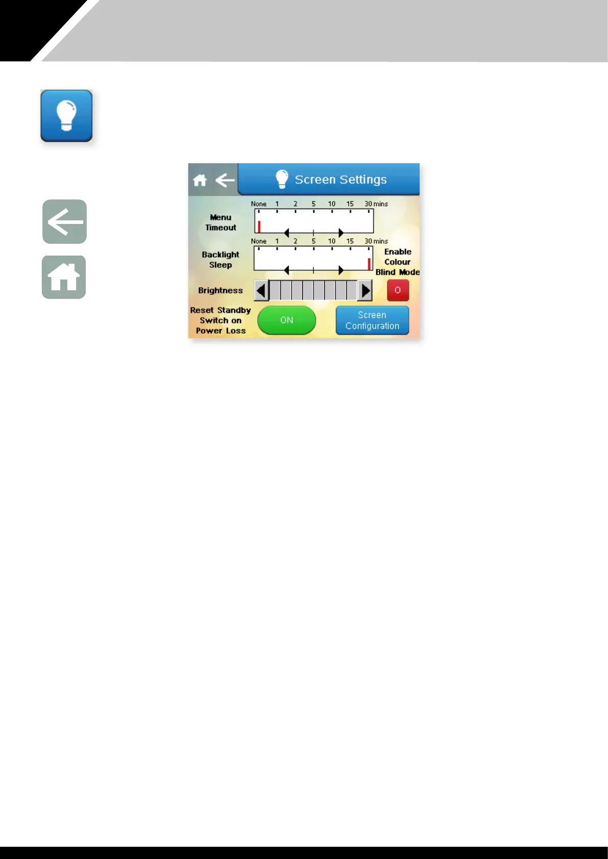 Screen Configuration settings button – allows access to advanced screen