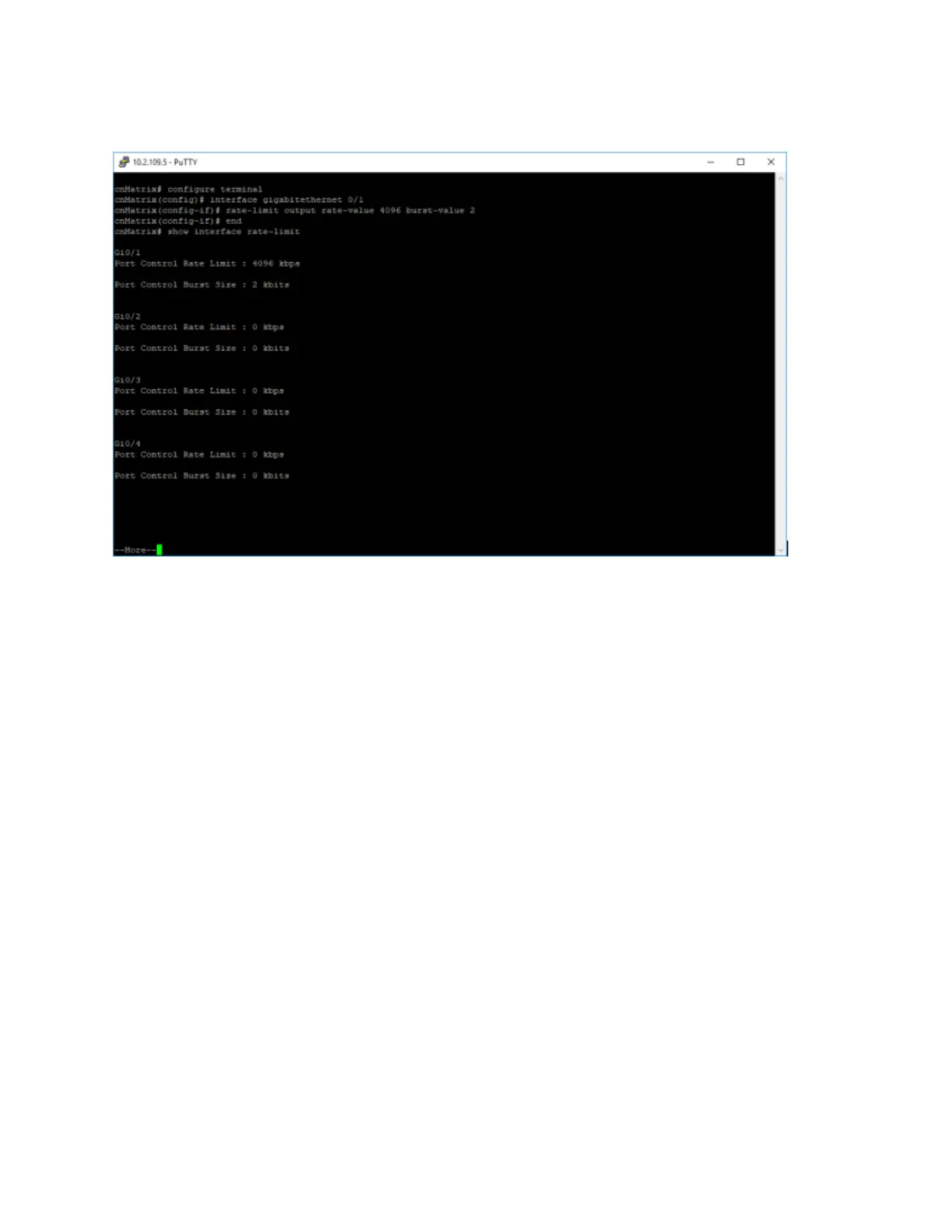 the rate-limiting and the burst packet rate for the interface. Press the Enter key.
