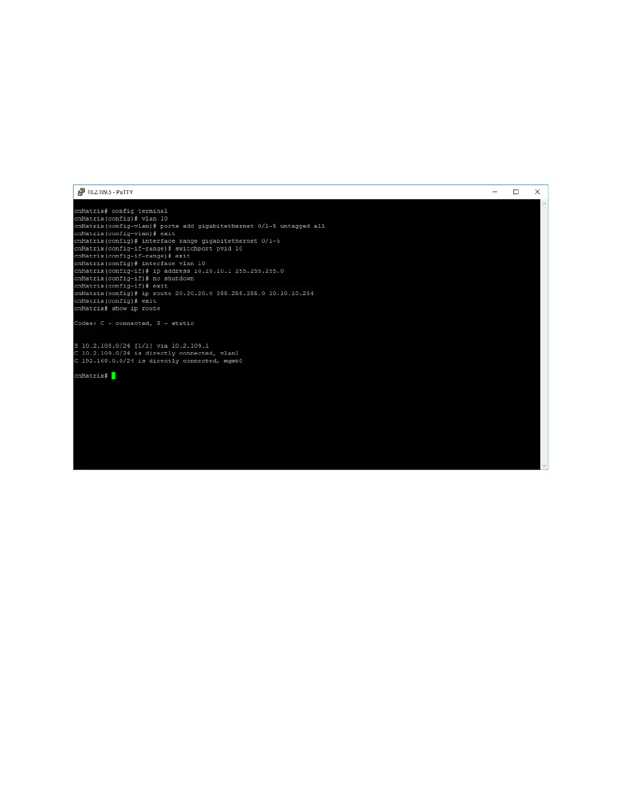 2. Type the vlan 10 command into the terminalto go to the configuration VLAN mode. Press the