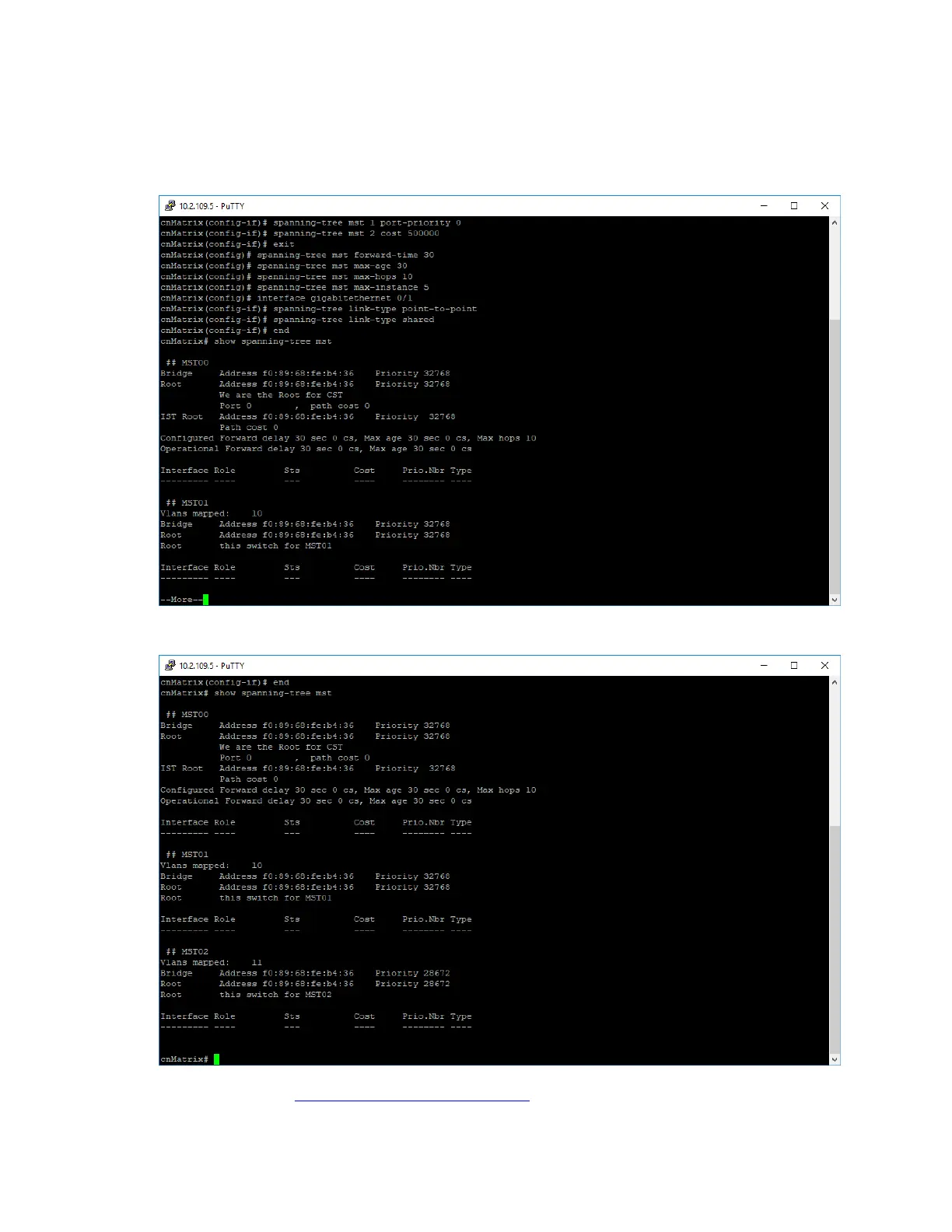 21. Type the show spanning-tree mst command into the terminal. Press the Enter key.