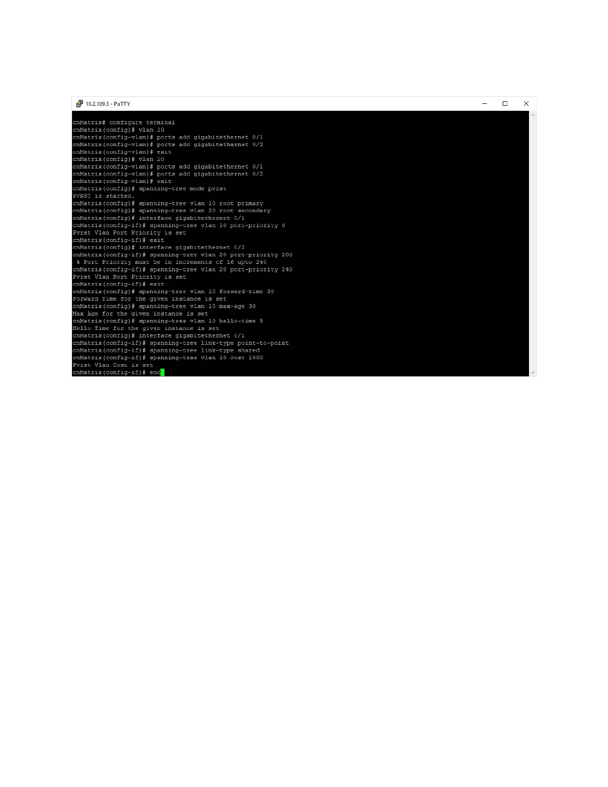 11. Type the spanning-tree vlan 10 root primary command into theterminal to configure the root