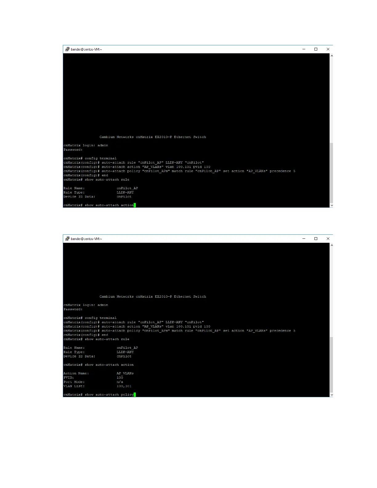 10. Type the pba action (or show auto-attach action) command into the terminal to display