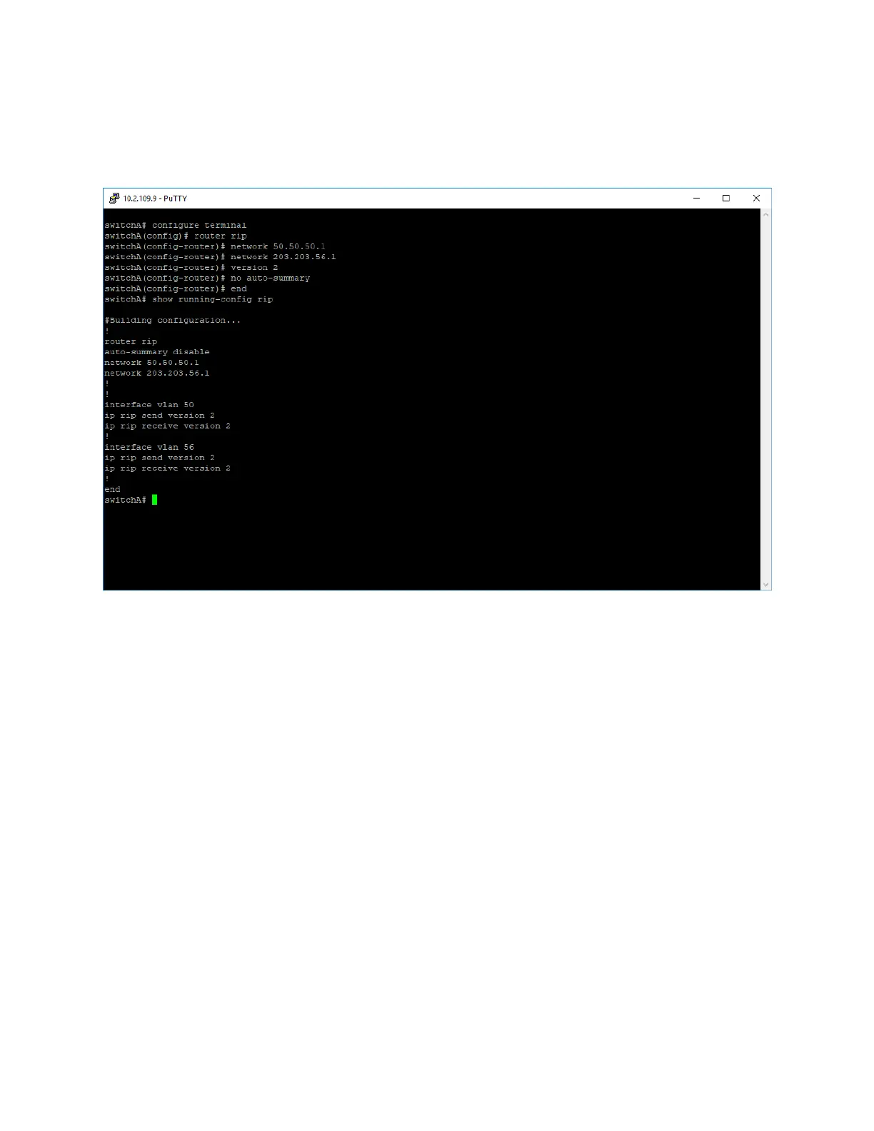 4. Type the show run rip command into the terminal to display the current operating configuration.