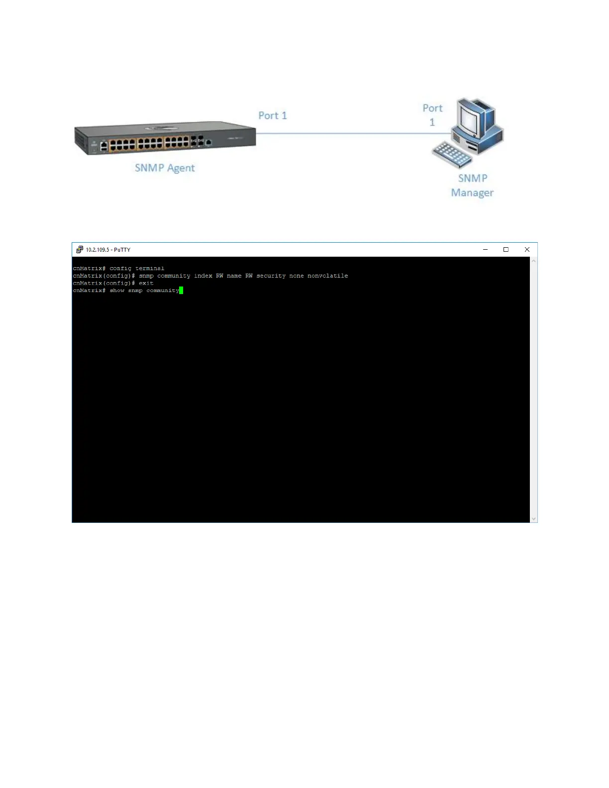 terminal to configure the SNMP community details. Press the Enterkey.