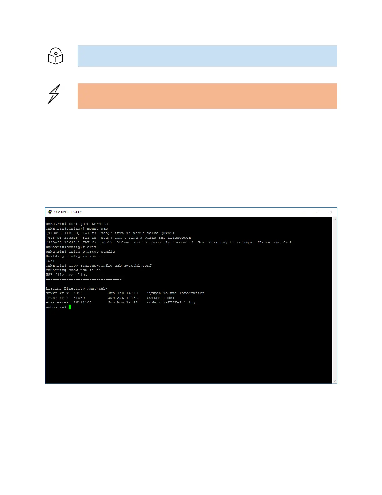 2. Type the mount usb command into the terminal to mount a USB stick. Press the Enterkey.
