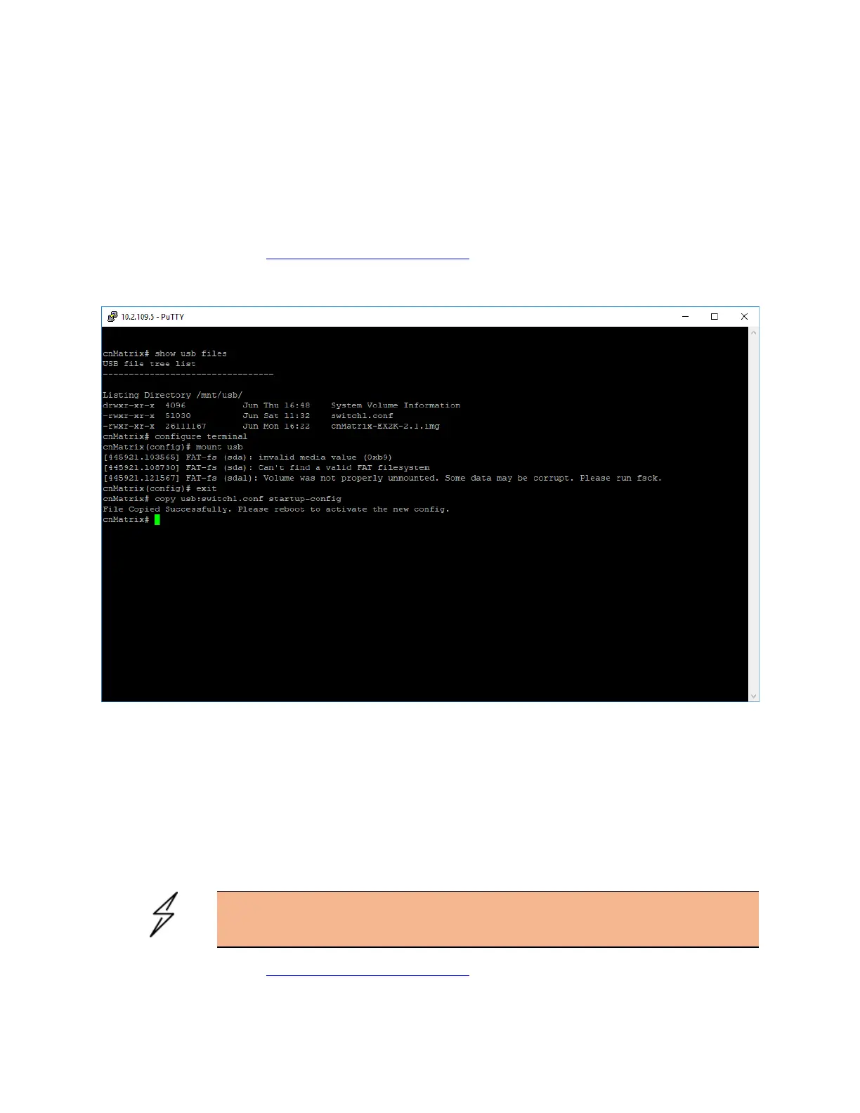 5. Type the copy usb:switch1.conf startup-config command into the terminal to copy an existing