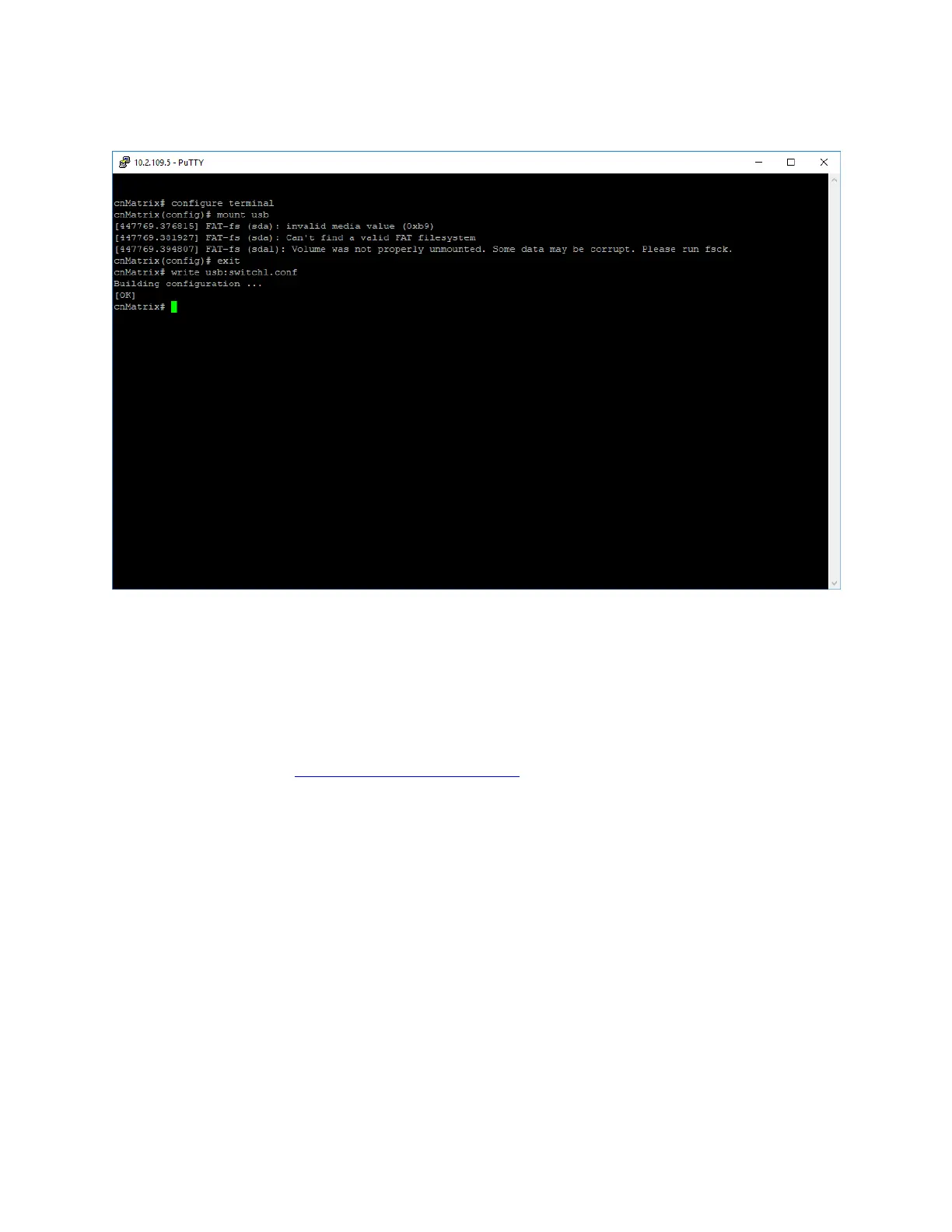 4. Type the write usb:switch1.conf command into the terminal to specify the destination path and to