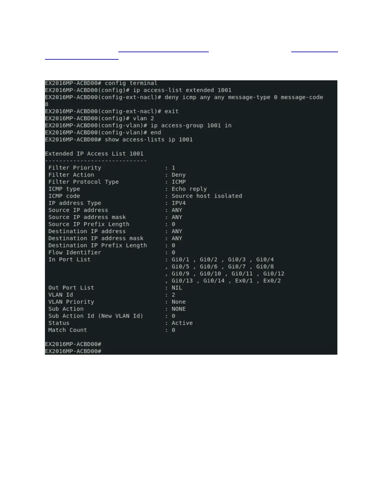 Configuring ACL in CLI Interface for a Vlan - Immediate Mode
