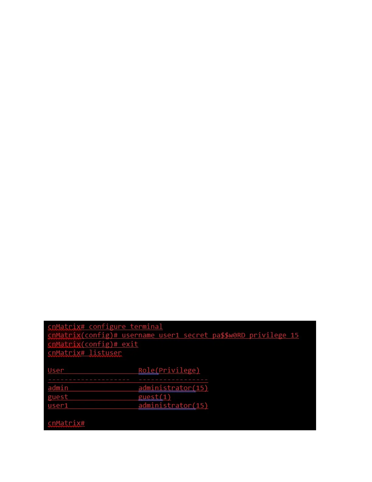 guest user has lower privileges (1), which grant access only to clear, debug, ping, and show