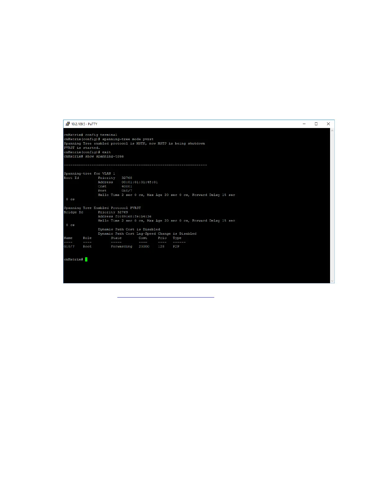 4. Type the show spanning-tree command into theterminal to display the spanning tree information.