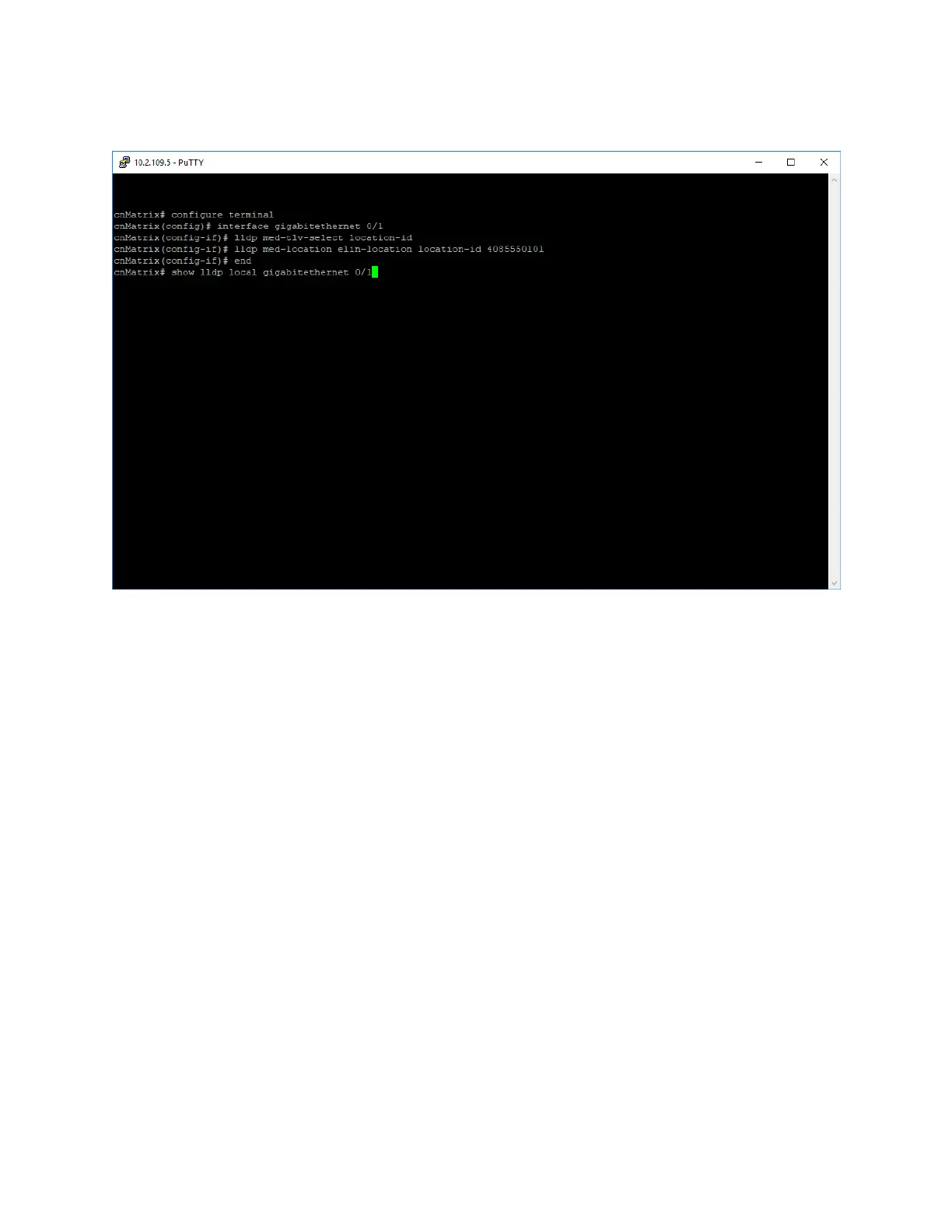 3. Type the lldp med-tlv-select location-id command into the terminal to select LLDP-MED TLV and