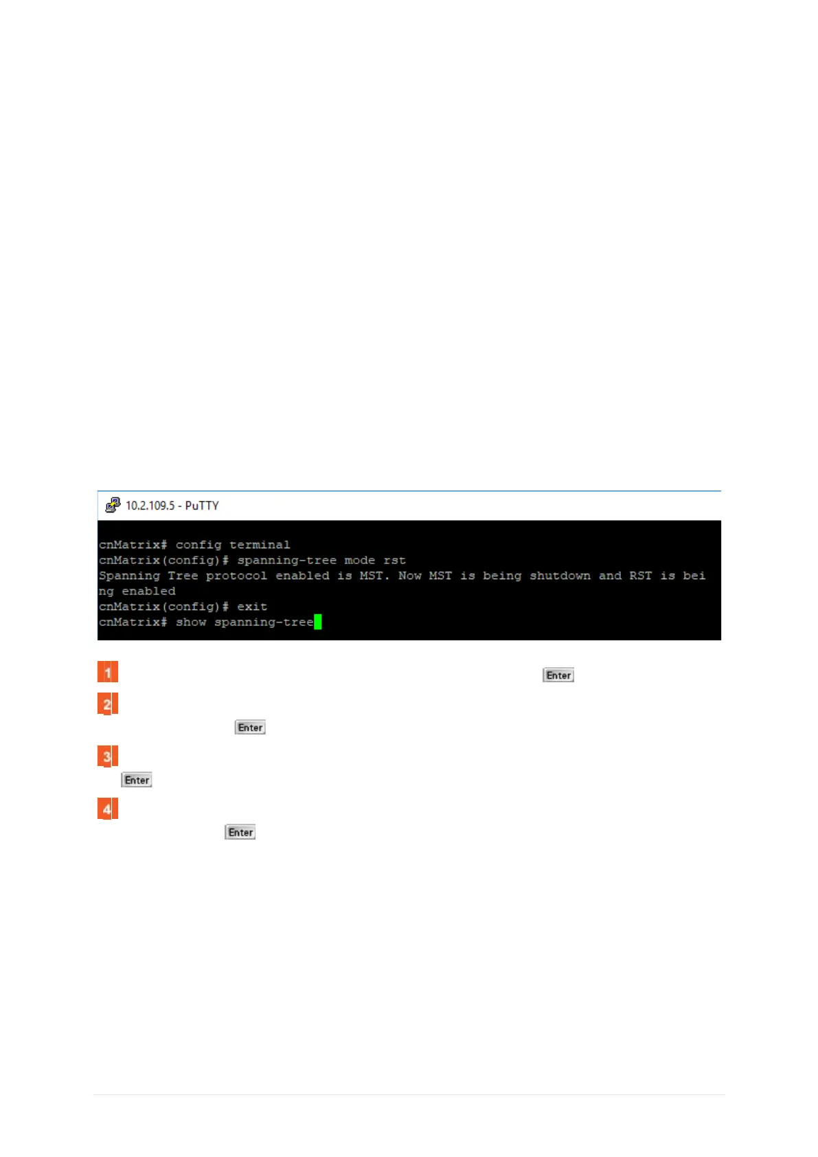 Type the spanning-tree mode rst command into the terminal to set the spanning tree oper-