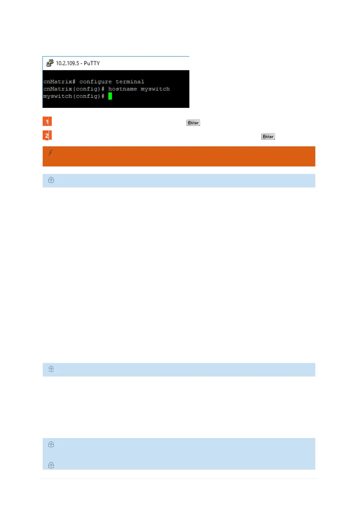 Enter hostname myswitch into the field to change the host name . Press the key.