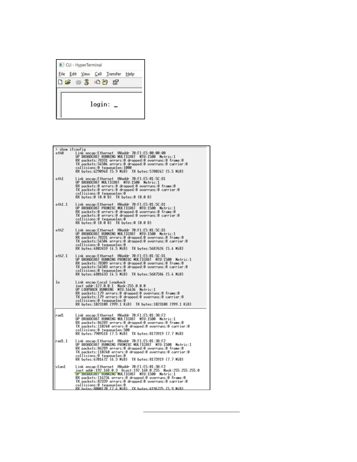 1. Type show ifconfig. The default Interface configuration (bridge) lists an IP address for VLAN1 only.