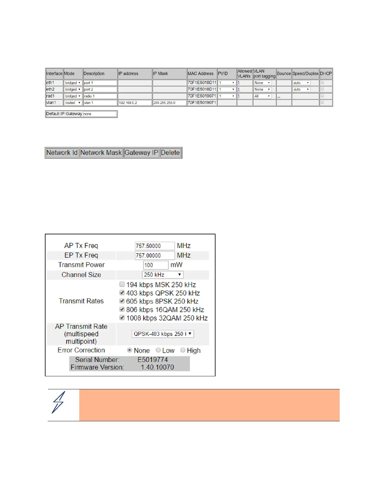 Set both radios as follows (frequencies, modulations and channel size will depend on link design.