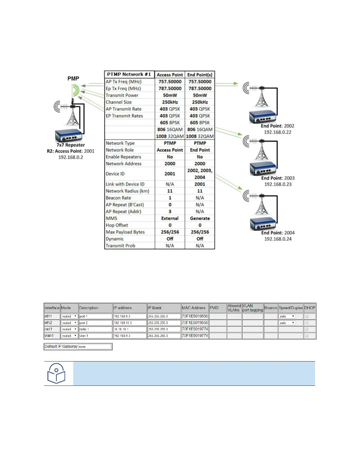 The link table in the following diagram contains the settings required to set up a Point-to-MultiPoint