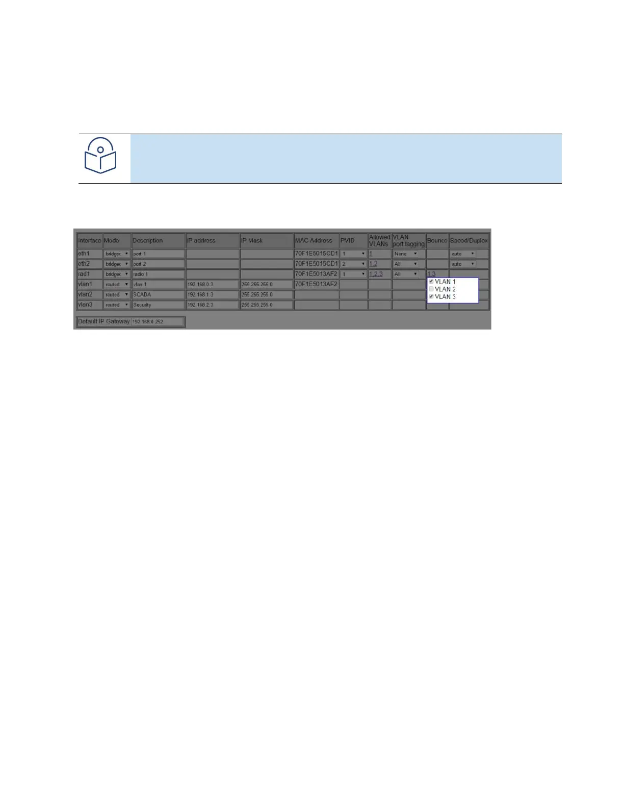 If a Default Gateway is configured, the Radio will periodically attempt to resolve the MAC address of the