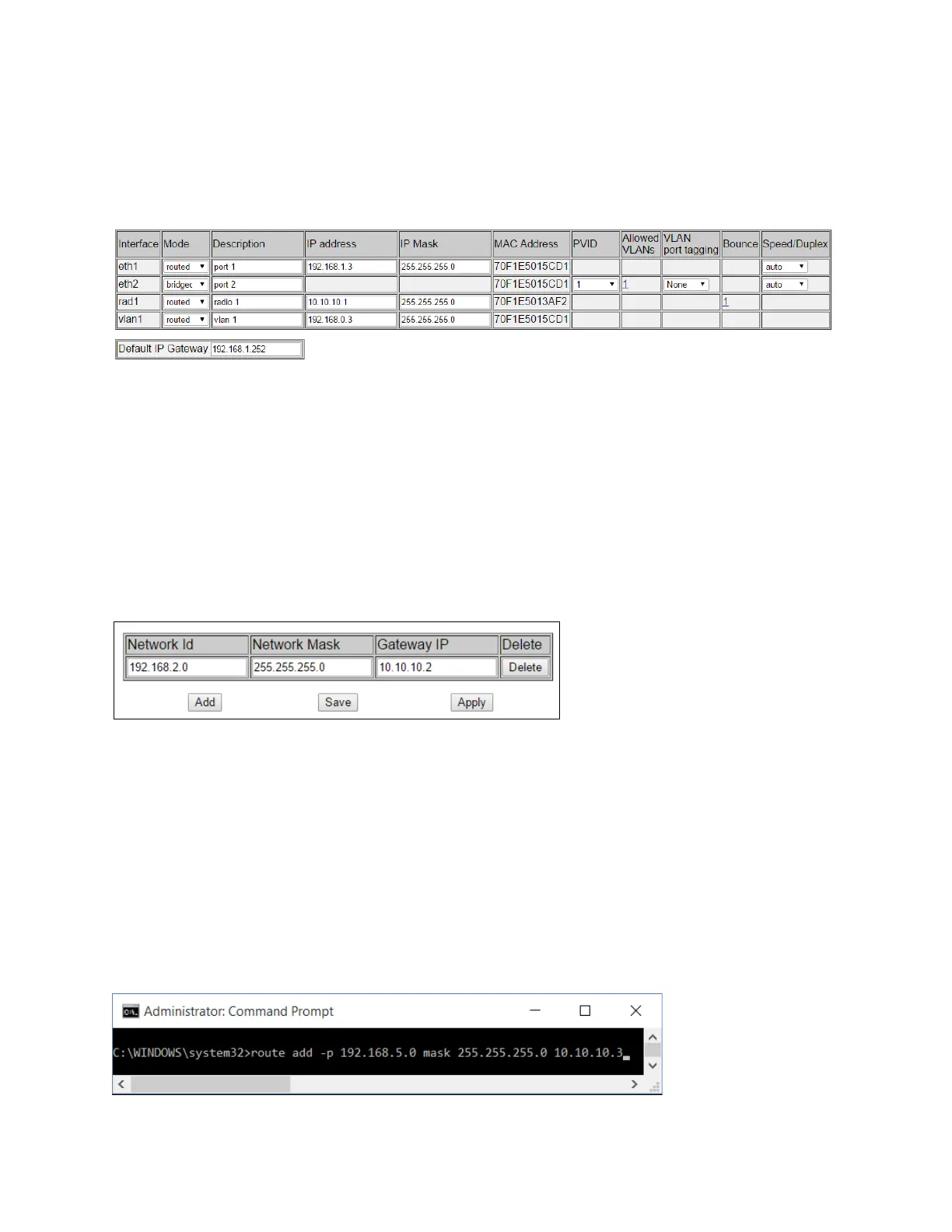 Static Routes should also be configured in any host that is connected to the Access Point. This can be