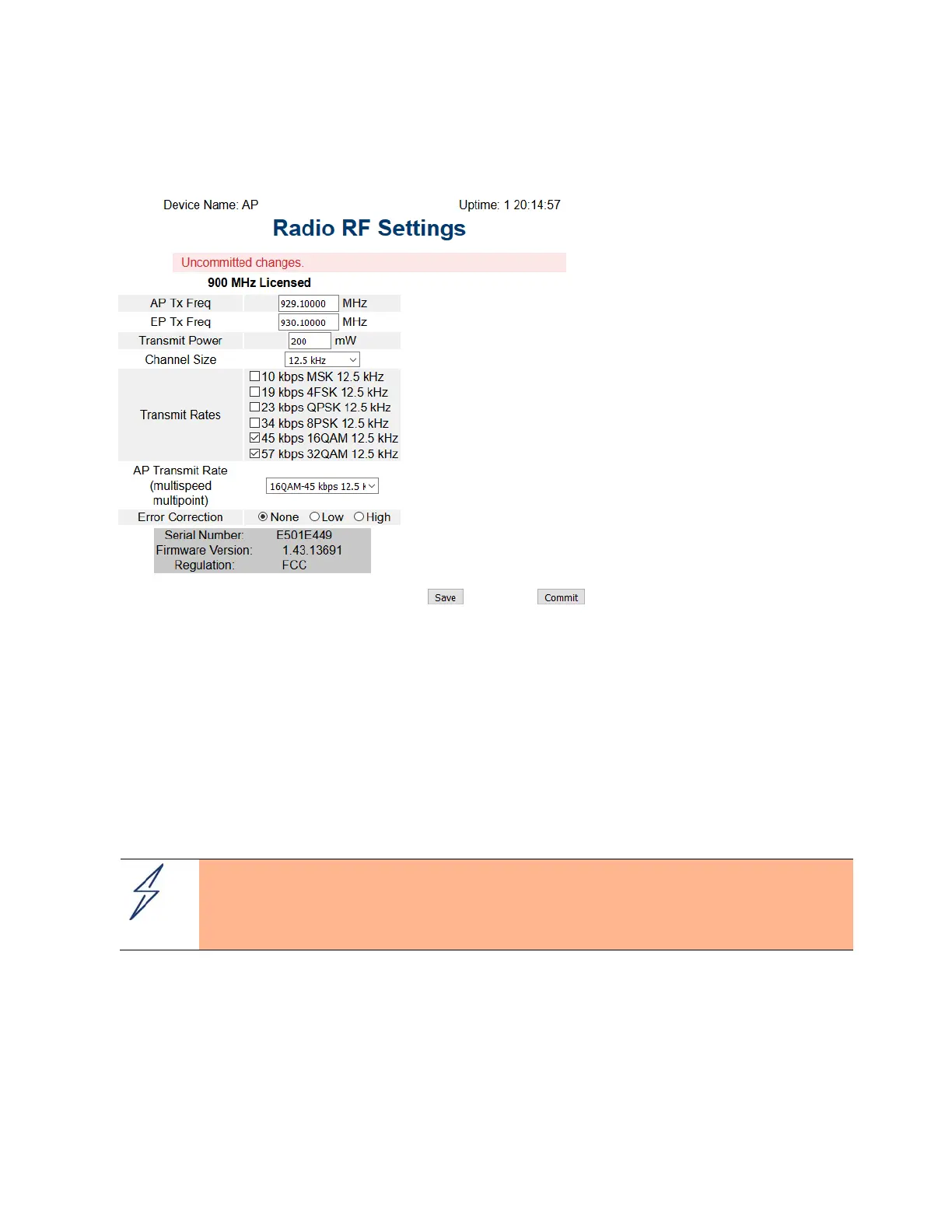 If a licensed band is selected in Radio/Band settings, the following parameters are configurable: