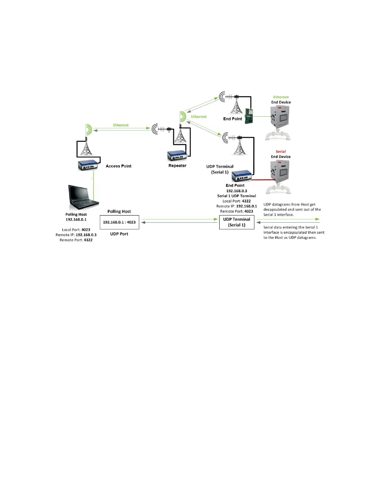 establish a connection. UDP datagrams arriving will be decapsulated and converted to Serial data then