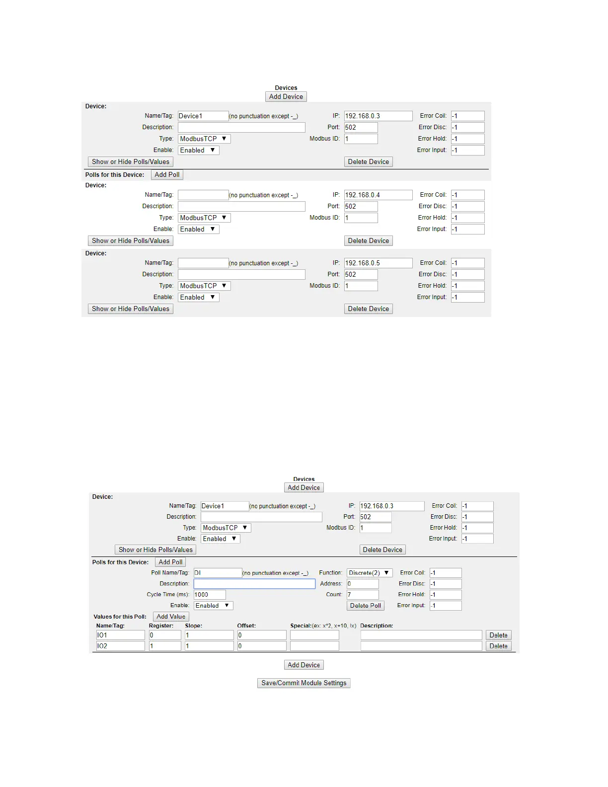 Under each poll the particular values that are of interest are defined.One to many devices can be