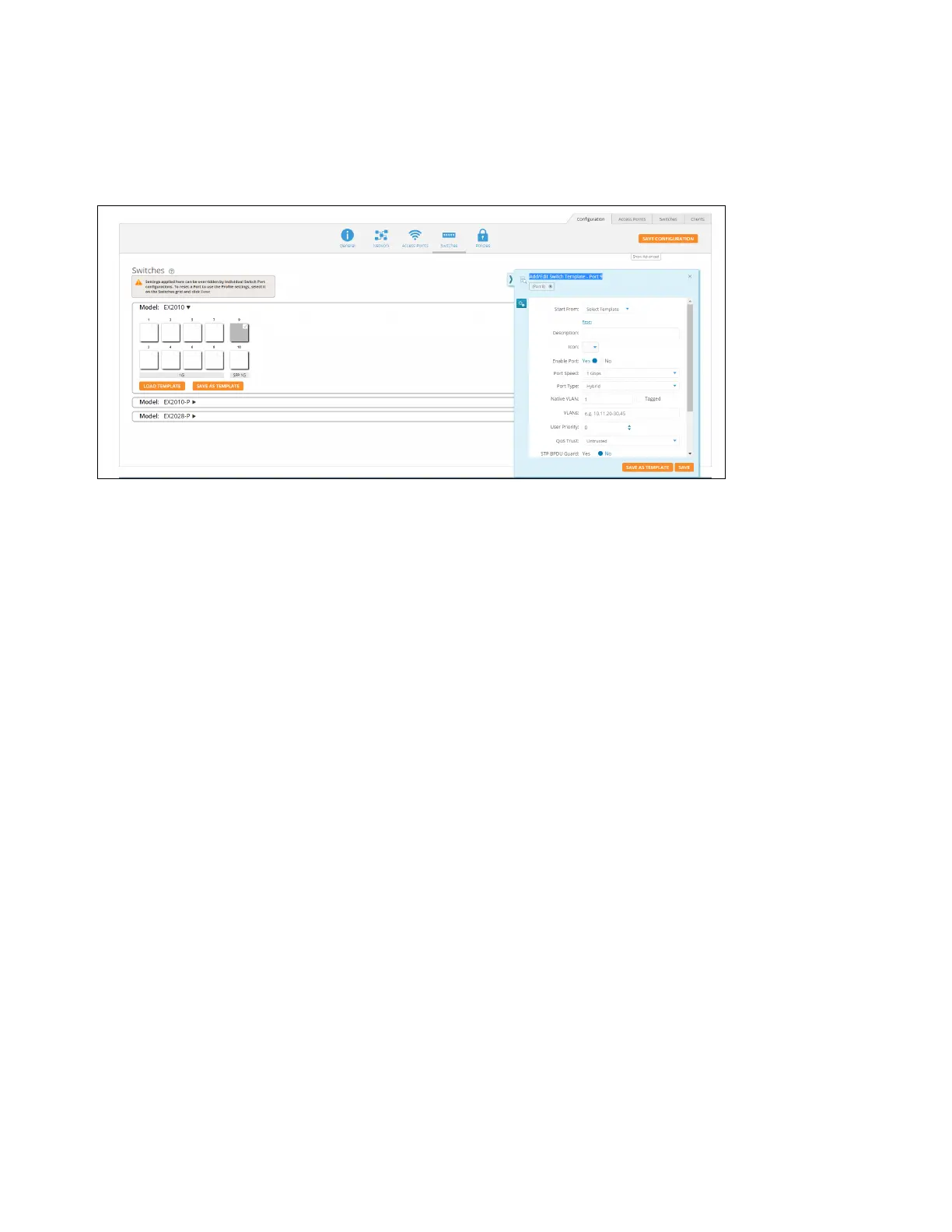 To configure click on any of the ports. Add/Edit Switch Template Port, window pops up enter the fields to