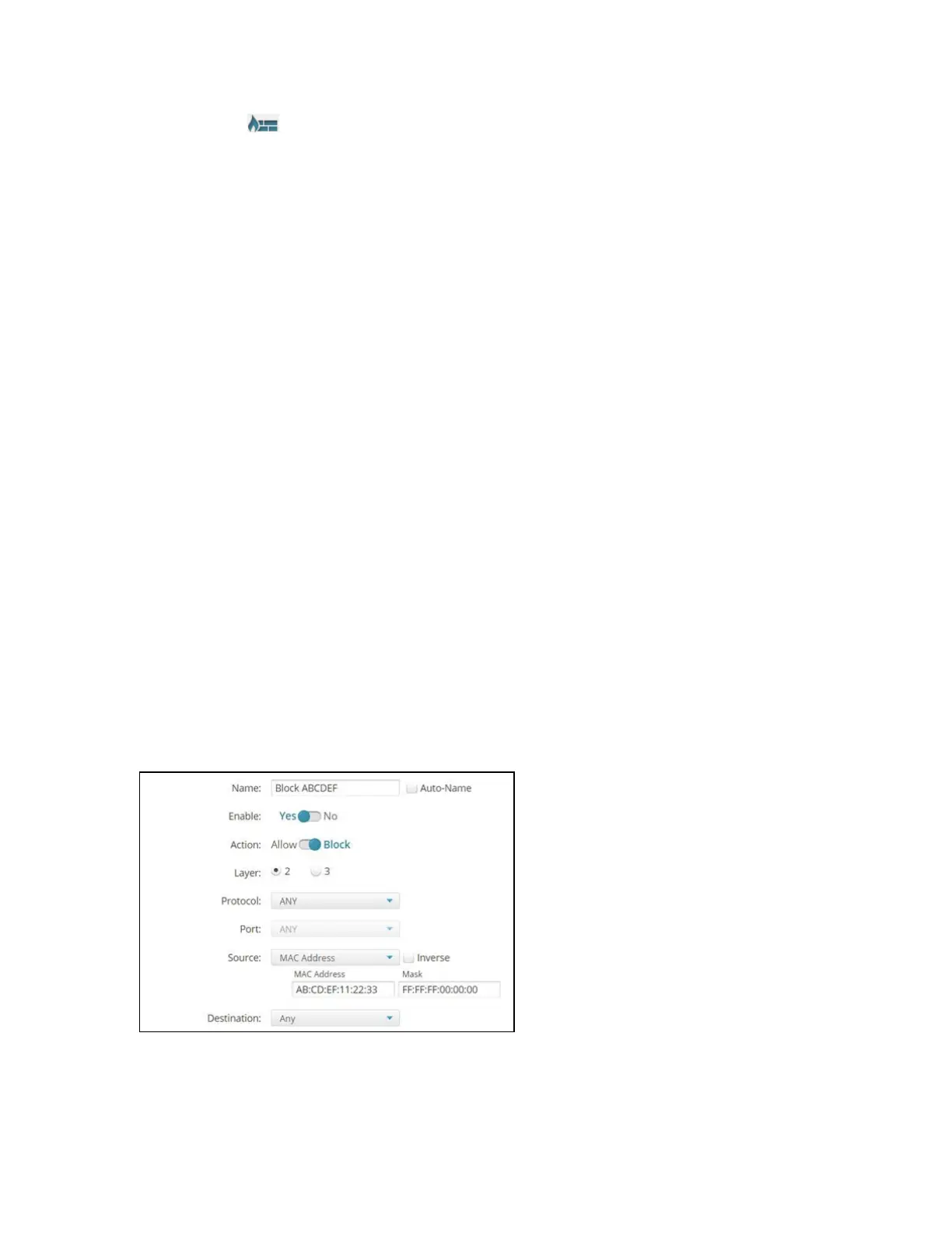 considered. In the example, this rule will block traffic originating from devices whose MAC address starts