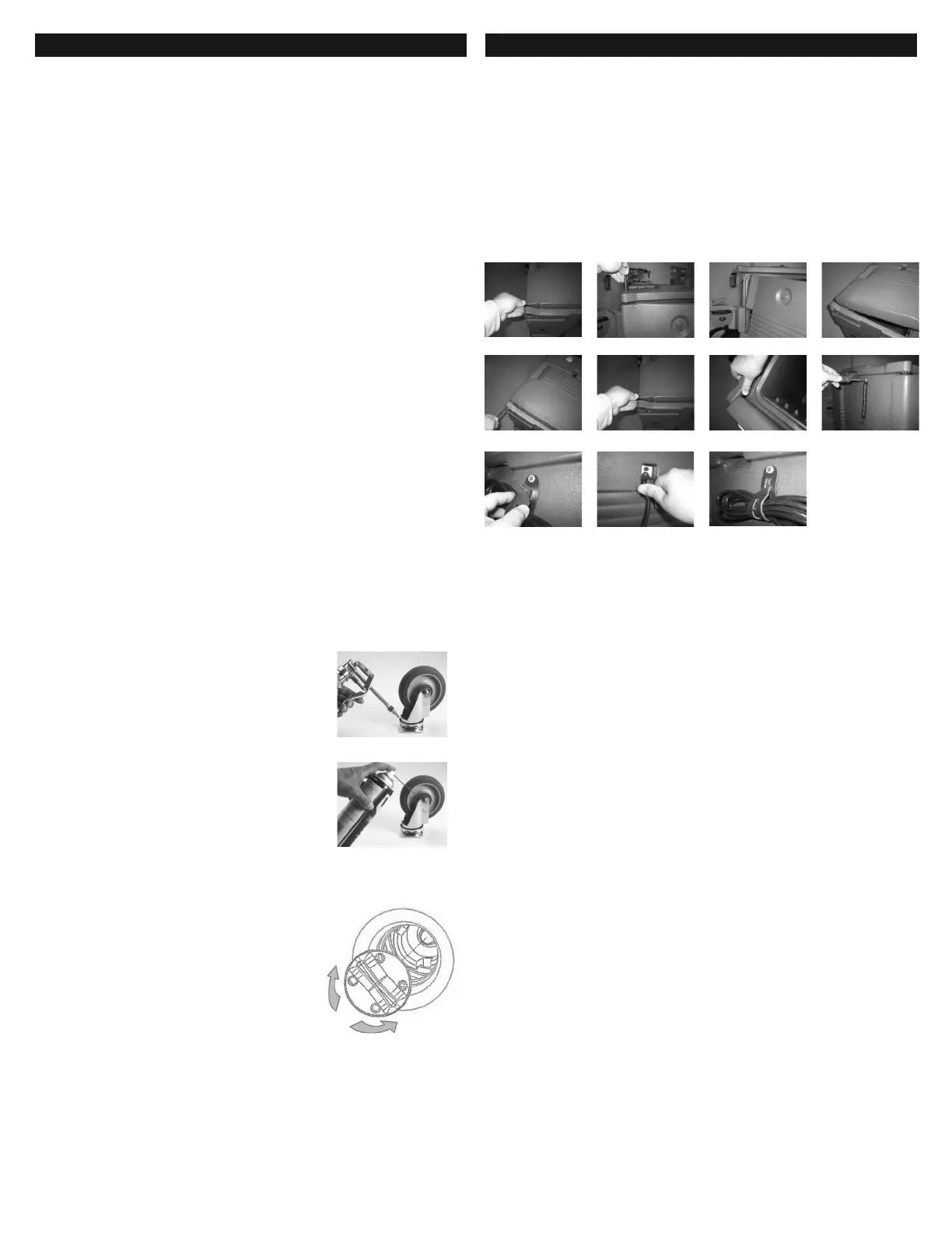 1. 用润滑剂给脚轮的旋转槽润滑,例如,