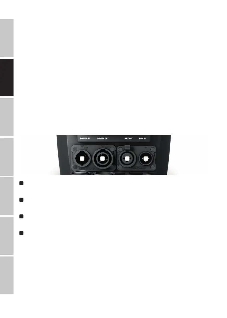 • 3-Pol XLR-Anschlüsse. W-DMX-Empfänger integriert