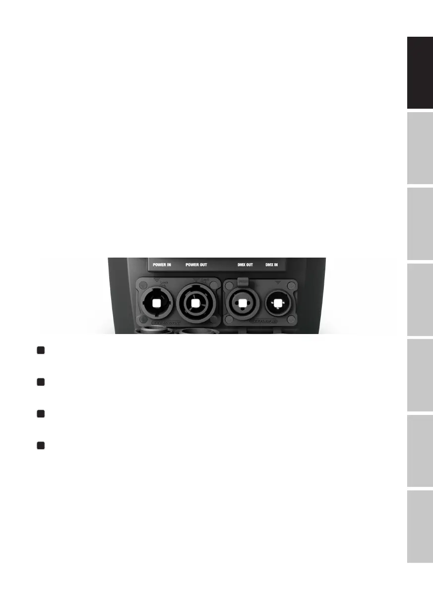 • 3-pin XLR connections. W-DMX receiver integrated