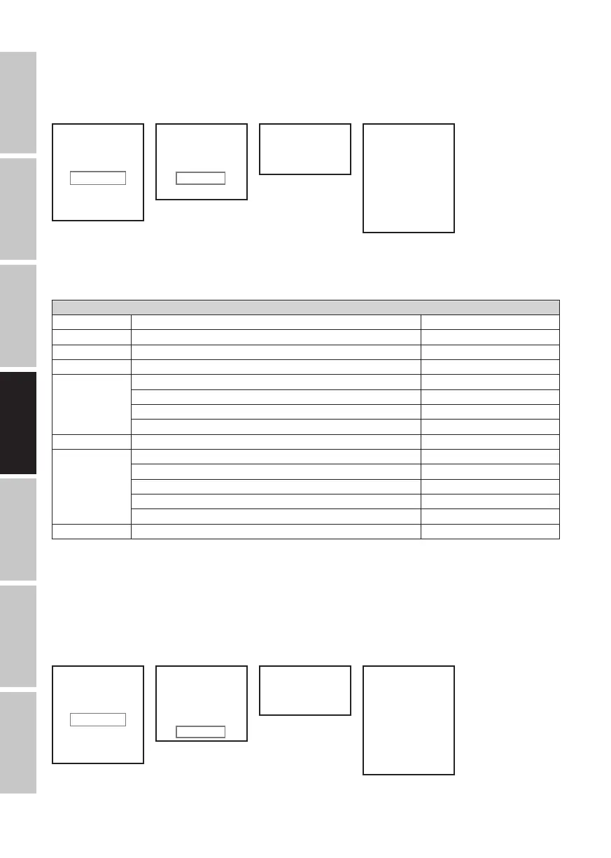 Seguidamente se abre el submenú que permite ajustar las opciones de submenú (ver tabla; se seleccionan con los botones UP y DOWN y se