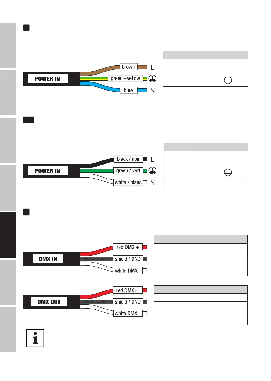 wtyczki. DMX IN i DMX OUT są identyfikowane za pomocą etykiet. Połączenie: