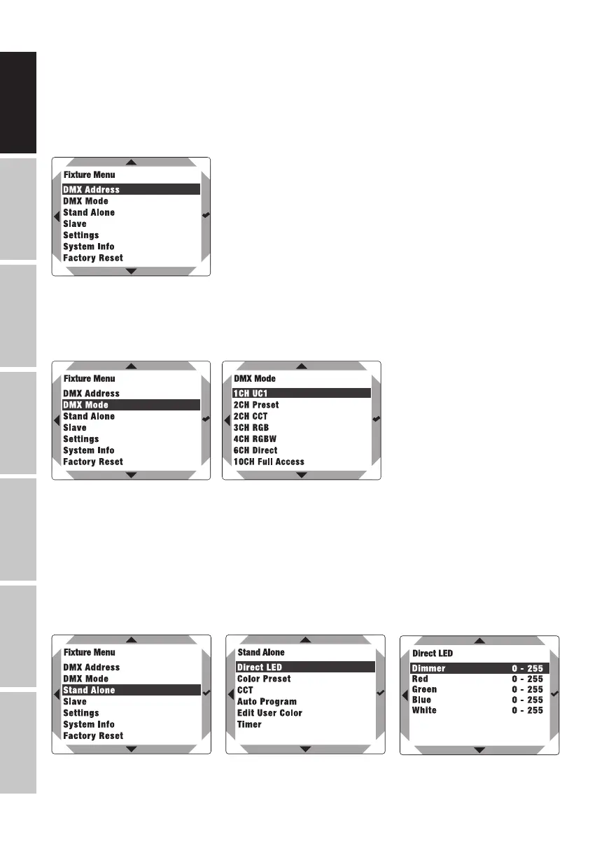 The stand-alone Direct LED mode allows dimmer and RGBW to be set directly on the unit with
